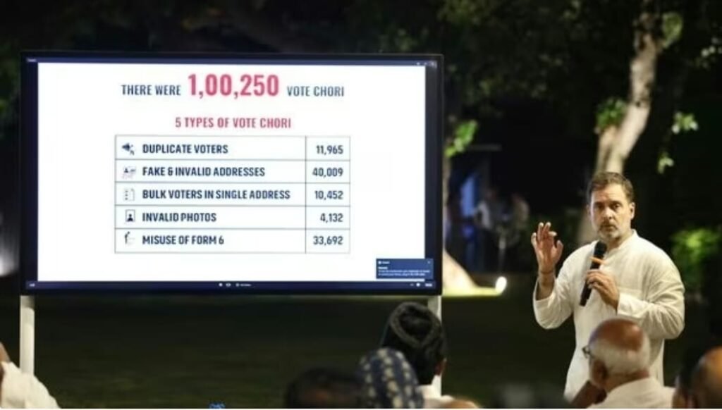 7 अगस्त 2025 को राहुल गांधी ने एक प्रेस कॉन्फ्रेंस में बड़ा धमाका कर दिया। हाथ में “FAKE & INVALID ADDRESSES – 40,009” की रिपोर्ट लहराते हुए उन्होंने कहा है|